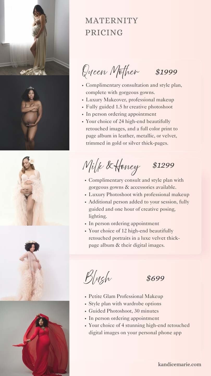 Your price covers your time being treated like a queen and having these beauty services, expert guidance, a beautiful space, the skill of your photographer and beauty artistry, as well as a print to page album including 10 high-end beautifully retouched digital art files. Upgrades to more images are available at your next day appointment.